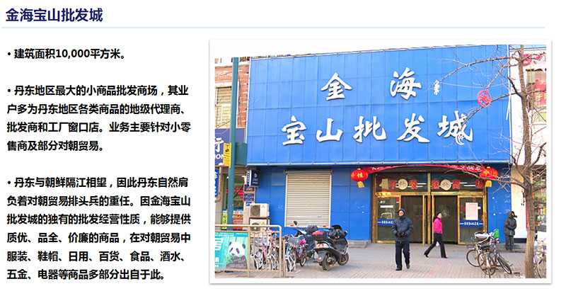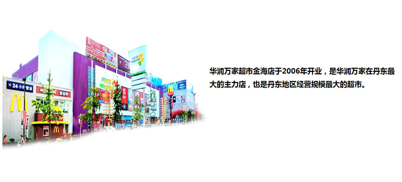 金海商業(yè)廣場2004年11月開工,2006年竣工,位于丹東市東部,抵觸丹東東西主干道錦山大街和南北主干道金海路交匯處,是丹東東部地區(qū)的商業(yè)中心??偨ㄖ娣e約10萬平方米,由大型購物廣場、女人街A、B座室內步行街、女人街C座、麥當勞、金海寶山批發(fā)城等主要建筑構成 。大型購物中心樓前設有露天停車場,并配有先進的車輛停泊管理系統(tǒng),可以滿足整個商圈的停車需求。金海商業(yè)廣場擁有大型超市、五星影城、時尚餐飲、流行百貨、電器賣場、游樂中心、家具工廠店、小商品批發(fā)城等等,通過多種業(yè)態(tài)的錯位經(jīng)營,展現(xiàn)完善的購物、餐飲、娛樂、休閑、文化、旅游功能。