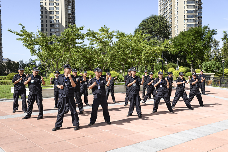 物業(yè)總公司為進一步提升服務品質,提高保安人員的能力素質,于8月23日組織了為期一周的格斗技能訓練。