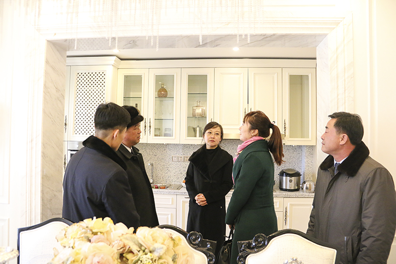 12月27日下午,朝鮮新義州市市長和代表團一行蒞臨金海?濱江3號,丹東市副市長潘爽及金海集團常務副總經(jīng)理莫丹熱情接待了他們,并陪同參觀了金?!I江3號樣板間、園區(qū)、金海大廈電影院、社區(qū)食堂以及金海熙康體檢中心。
