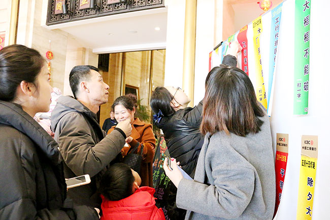 正值元宵佳節(jié),3月2日下午,經(jīng)營(yíng)中心聯(lián)合工商銀行鴨綠江支行在金海濱江3號(hào)售樓處大堂準(zhǔn)備了50多個(gè)燈謎供君猜賞,到訪即可參與“猜燈謎,贏好禮”活動(dòng)。
