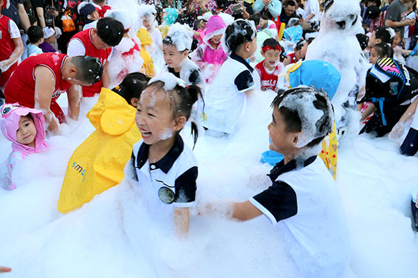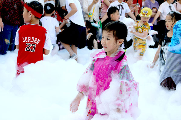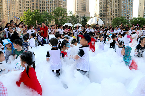 終于到了孩子們最期待的泡泡盛宴環(huán)節(jié),寶寶們爭先恐后、不顧一切地沖入泡泡的世界,果真泡泡的魅力無限大呢!在漫天雪花似的泡泡盛宴中,孩子奔跑、大笑、尖叫!體驗(yàn)著從未有過的快樂時(shí)光!超大功率的泡泡機(jī)將噴射出泡泡,瞬間充滿整個(gè)廣場,從天而降的泡泡也讓您感受最涼爽的夏天!