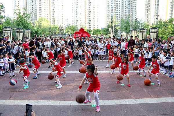 活動(dòng)以恩舟教育寶寶們的籃球秀拉開了帷幕,在音樂的伴奏下,只見籃球在這些小朋友手里揮來揮去,萌娃們跟隨著旋律變換隊(duì)形,用右手拍球、左手拍球等方法展示自己的基本功,讓前來觀看的大人都自嘆不如。