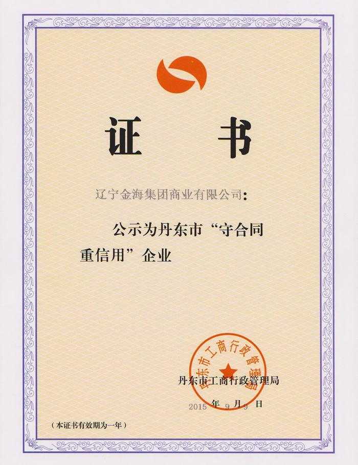 近日,商業(yè)公司順利通過丹東市工商行政管理局的各項審核,合同簽訂和管理得到了市工商局領(lǐng)導的高度認可。此次,商業(yè)公司已經(jīng)是第七次獲得省、市工商局授予的“守合同重信用”企業(yè)榮譽稱號。