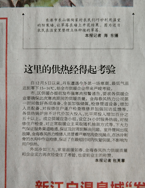外面冷如三九,家里溫暖如春,保證金海供熱轄區(qū)用戶平穩(wěn)度過寒潮影響期,金海春風(fēng)熱力供暖質(zhì)量和企業(yè)實力再次經(jīng)受住了考驗,也受到業(yè)主的稱贊。