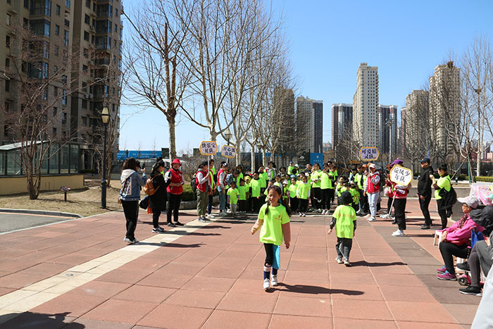 早上8:30,家長孩子們?cè)阢y帆老師的帶隊(duì)下,從江邊玫瑰廣場(chǎng)開始,徒步到達(dá)濱江3號(hào),家長孩子手牽手,或孩子在前,健步如飛,親情與快樂元素點(diǎn)燃了現(xiàn)場(chǎng)的氛圍。