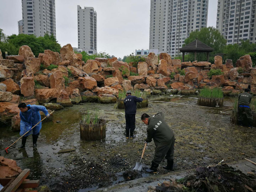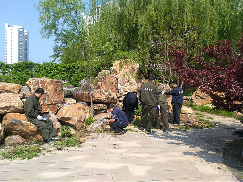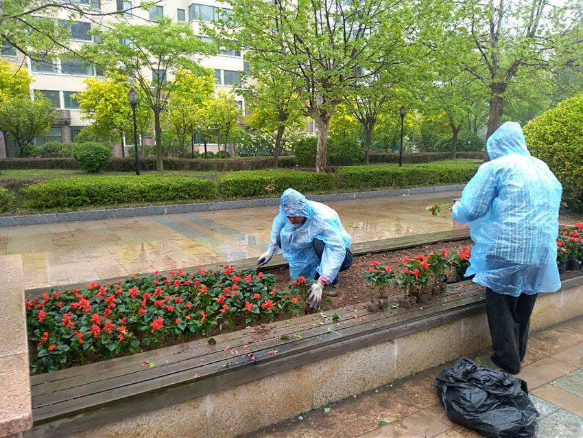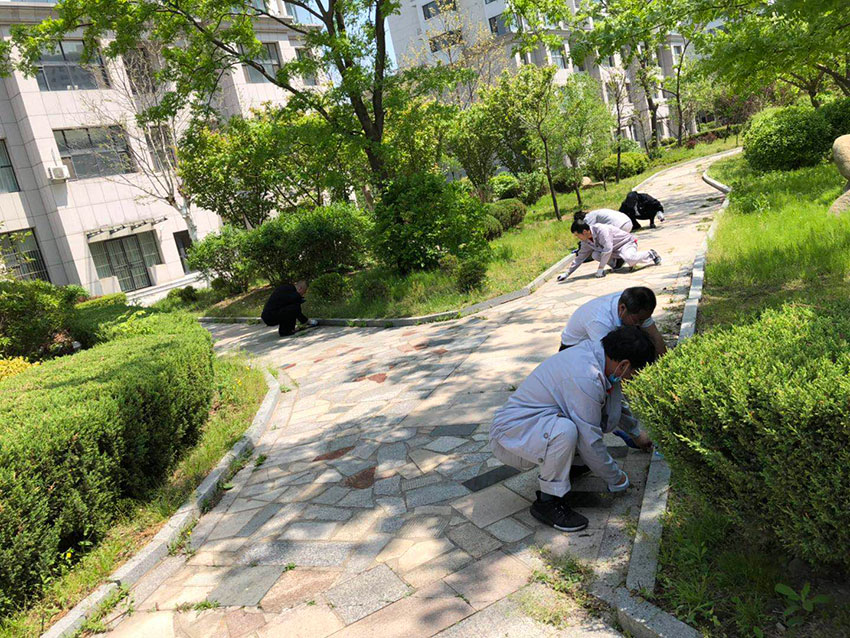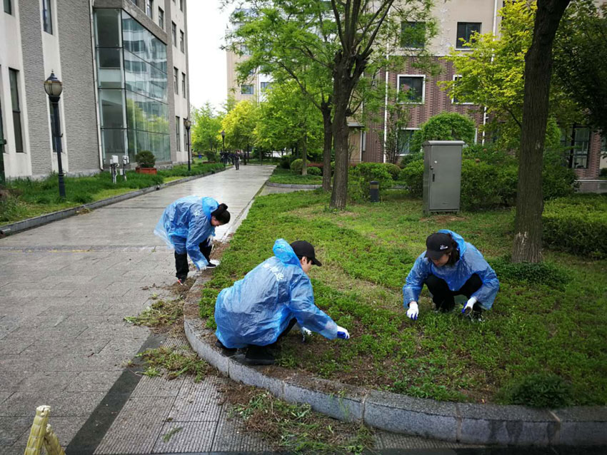金海員工們劃片分區(qū),各領(lǐng)任務(wù),迅速投入園區(qū)清掃、園林拔草、園林維護(hù)各項(xiàng)緊張勞動(dòng)當(dāng)中。