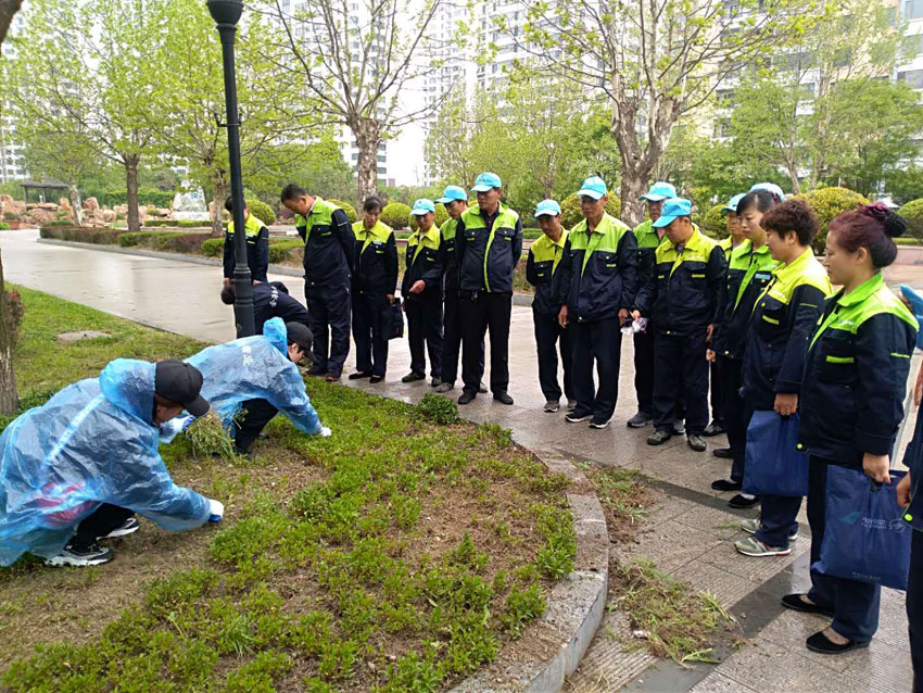 原來(lái),金海物業(yè)新近承接了新區(qū)大型公務(wù)員小區(qū)——國(guó)門(mén)灣新世紀(jì)佳園,他們這是金海員工總動(dòng)員,利用這個(gè)周六、周日全體去參加義務(wù)勞動(dòng)!