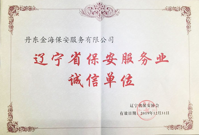近期,在遼寧省保安協(xié)會(huì)評選的先進(jìn)單位中,丹東金海保安服務(wù)有限公司喜獲“遼寧省保安服務(wù)業(yè)誠信單位”。