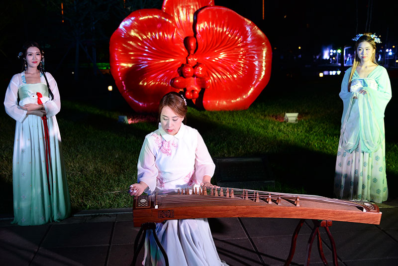 演奏曲目有《琵琶行》,《紅顏舊》,《星月神話》等,悠揚(yáng)飄蕩,綿延回響,無(wú)限的深情縈繞在美麗園區(qū)空間,纏綿的思念流淌在人們心間。