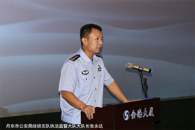 培訓(xùn)中,丹東市公安局經(jīng)偵支隊(duì)執(zhí)法監(jiān)督大隊(duì)大隊(duì)長(zhǎng)張永達(dá)以“預(yù)防職務(wù)犯罪”為主題,從職務(wù)侵占、行賄受賄、挪用資金三個(gè)方面進(jìn)行了詳細(xì)講解。
