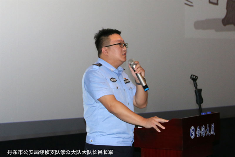 最后,丹東市公安局經(jīng)偵支隊(duì)副支隊(duì)長(zhǎng)姜本強(qiáng)進(jìn)行了總結(jié)性發(fā)言。他以房地產(chǎn)行業(yè)為例,講解典型案例,強(qiáng)調(diào)了違法犯罪現(xiàn)象可能就在身邊,切勿疏于防范,定要積極加強(qiáng)法律意識(shí)。