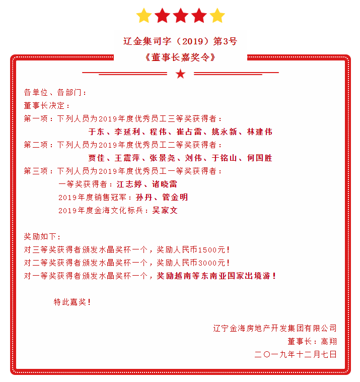 遼寧金海集團(tuán)2019年度先進(jìn)表彰