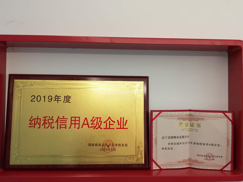 遼寧金海物業(yè)有限公司榮獲國家稅務(wù)總局丹東市稅務(wù)局頒發(fā)的“2019年度納稅信用A級(jí)企業(yè)”稱號(hào)。