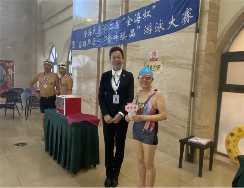 最后游泳館負責人王娜經(jīng)理感謝各位業(yè)主的積極參與,并宣布金海大廈游泳館第二屆“金海杯”游泳大賽圓滿結(jié)束!