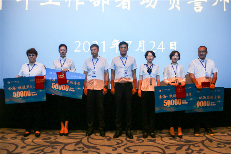 會(huì)議的第二項(xiàng)內(nèi)容是對(duì)全公司先進(jìn)典型人物進(jìn)行隆重表彰,由集團(tuán)副董事長(zhǎng)、總經(jīng)理賈本鑫,集團(tuán)常務(wù)副總經(jīng)理李小琳,集團(tuán)副總經(jīng)理劉中代表遼寧金海集團(tuán)對(duì)先進(jìn)典型人物進(jìn)行頒獎(jiǎng),獎(jiǎng)勵(lì)每人獲得桃源里購(gòu)房券5萬(wàn)元。