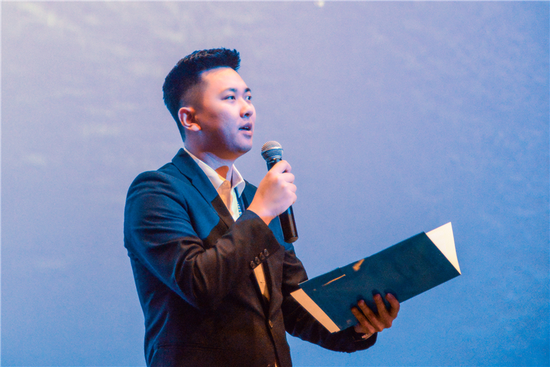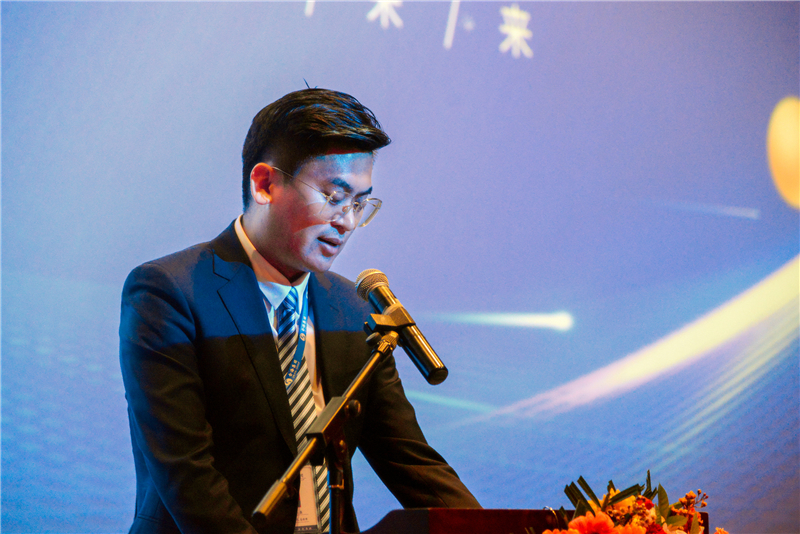 第四部分為董事長講話,由集團總經(jīng)理助理、招采部副經(jīng)理于鐘棋代表高翔董事長宣誦《女嬰》。