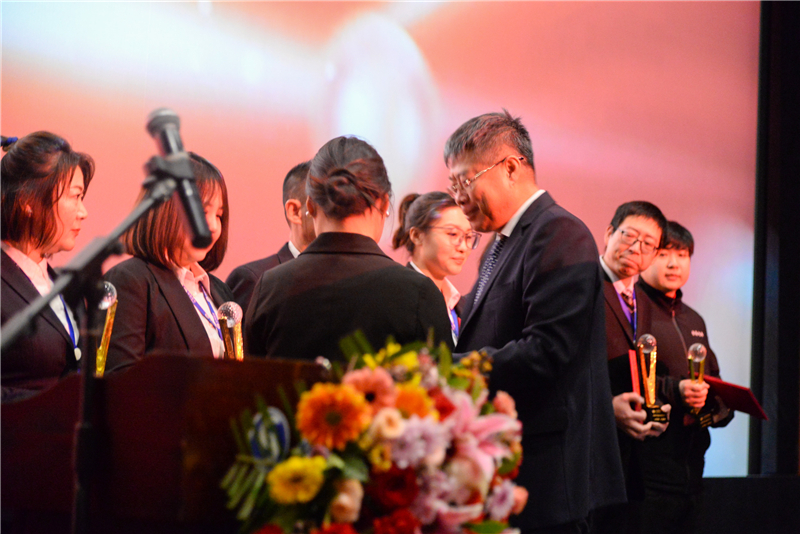 一等獎獲得者上臺領(lǐng)獎,集團副董事長、總經(jīng)理賈本鑫為一等獎獲得者頒發(fā)獎杯獎狀